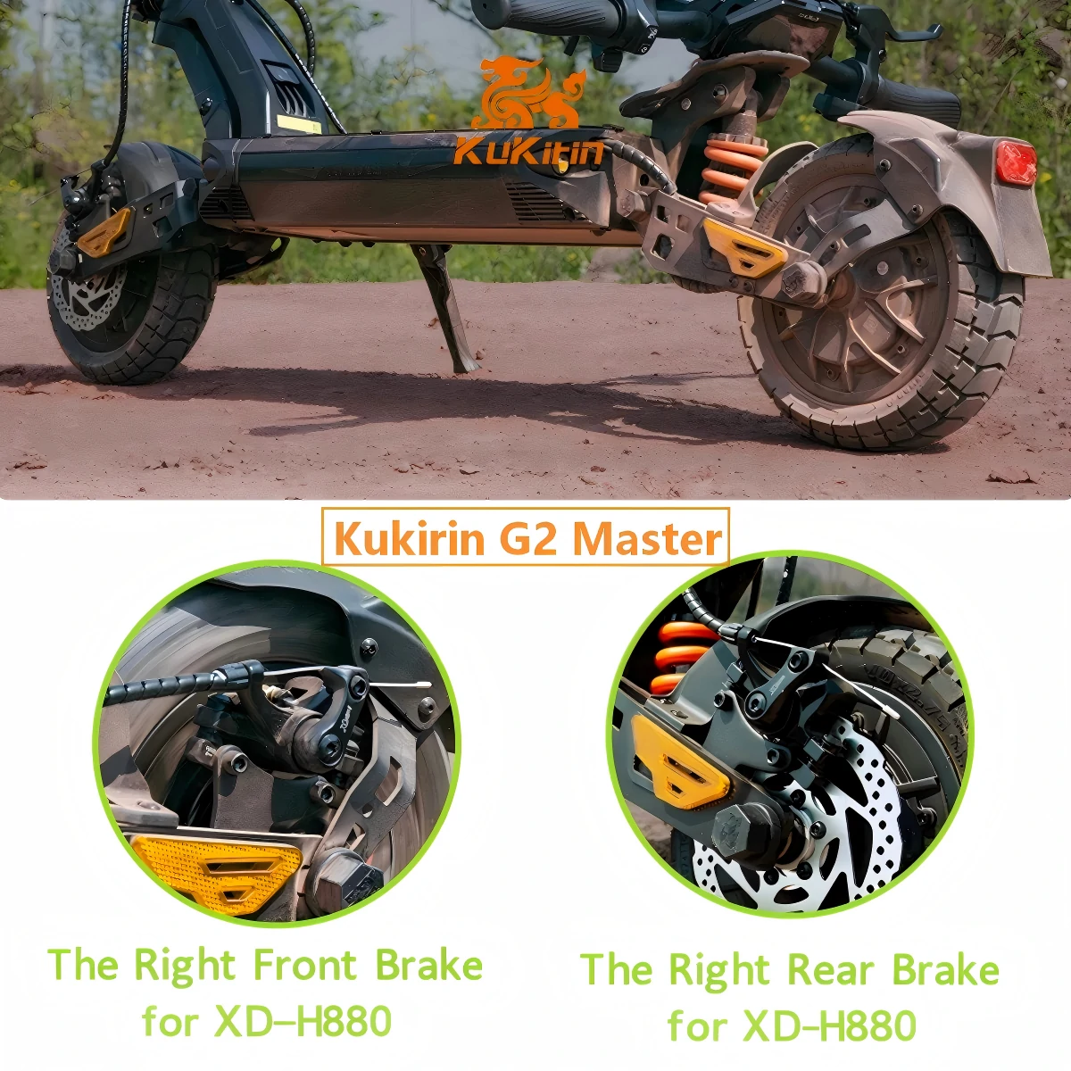 Yes, the XOD H800/H880 is widely compatible with all Kukirin electric scooters (G2 Master, G4, G2 MAX, etc.), as well as KUGOO, VIPCOO, and iENYRID. Choose the correct "Position" (Front/Rear/Set) from the options above.